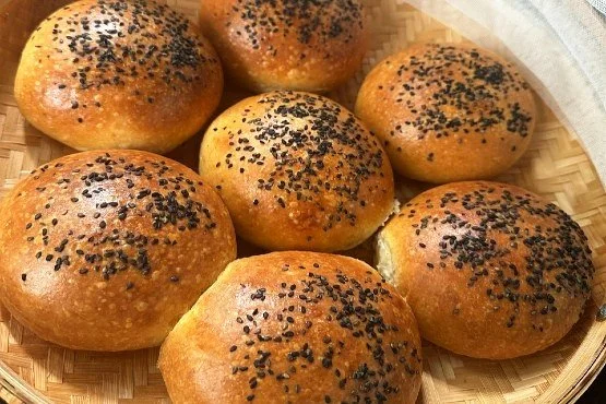 Nuestro pan de hamburguesa es suave, esponjoso y lleno de sabor, con una corteza dorada cubierta de semillas de sésamo. Fermentado con masa madre, sin aditivos ni azúcares añadidos. Eleva cualquier hamburguesa con textura, aroma y un toque artesanal en cada bocado.